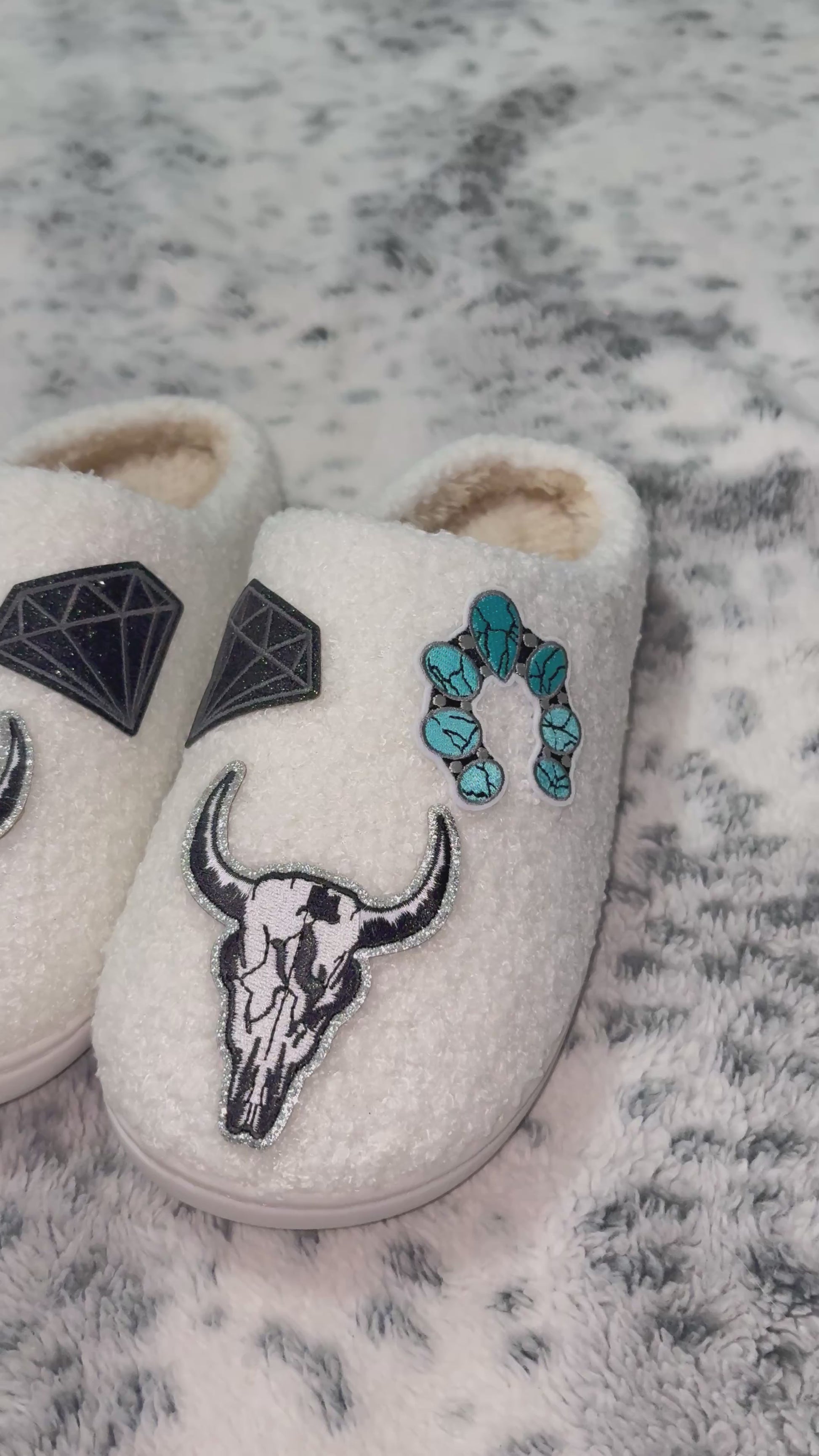 Turquois jewelry patch, black diamond patch, and black/white bull patch